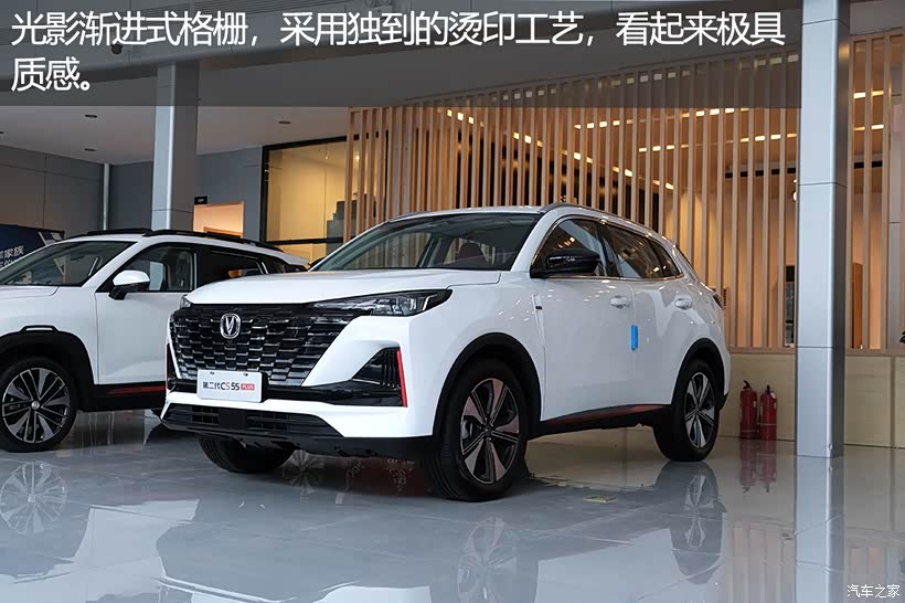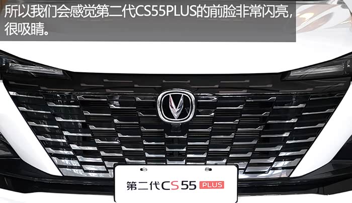 第二代CS55PLUS的外观设计十分具有独创性,尤其是光影渐进式格栅,采用独到的烫印工艺,看起来极具质感。