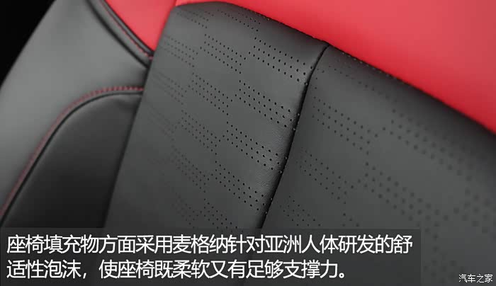 座椅填充物方面采用麦格纳针对亚洲人体研发的舒适性泡沫,使座椅既柔软又有足够支撑力,较高的回弹性,使乘员有乘坐沙发的感觉。后排座椅相比前排还要柔软舒适,很适合老人和小孩子乘坐。