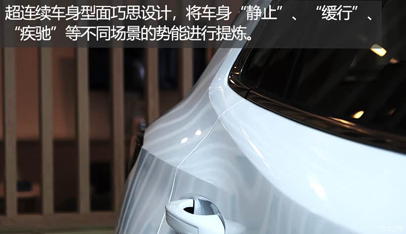 看似简单的侧面车身其实暗藏玄机,其采用了超连续车身型面巧思设计,将车身“静止”、“缓行”、“疾驰”等不同场景的势能进行提炼,与锋锐流畅的主特征线遥相呼应,极具视觉延伸效果。