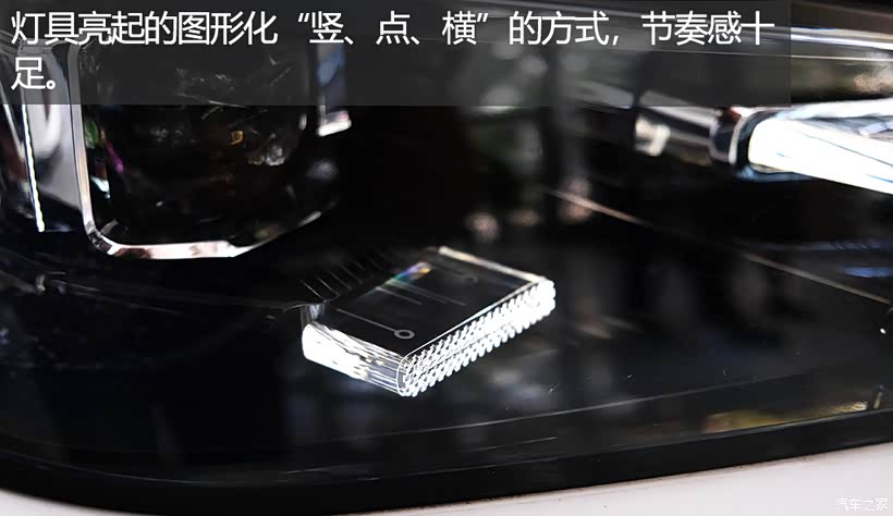 3段光导+厚壁立体发光效果拉满,灯具亮起的图形化“竖、点、横”的方式,节奏感十足。
