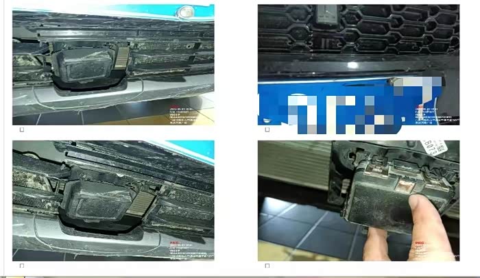 那天到达河南丰耀(坦克魏牌)中原1号4S店,初步发现前保险杠卡扣断裂 然后松动,保险杠漆有炸裂痕迹、然后车就被开到二层进行保险杠拆除进一步检查,发现前保险杠杠铁两侧都凹陷进去 、巡航传感器及支架向内凹陷、中冷器有两个小孔(保险杠支架顶的 他们的说法),4S店检查后却说我的车可能是被撞过,但车头外观上没有撞击的痕迹,我也敢确定车辆没有发生碰撞事故,而最近的我的车辆维修只有两次:分别是2023年8.27号被追尾,维修车尾部;2023年6月9号 我车头碰到了一辆电动自行车,然后送到店里维修车前部,这也是这车辆仅有的一次车头前部维修,这就让我不得不怀疑是车辆在6月9号那次事故维修时没有修彻底而导致的 ,因平时几乎很少开车,车都是停放在车库-2层的车位中。而且车前部并没有任何痕迹这也是最重要的原因。