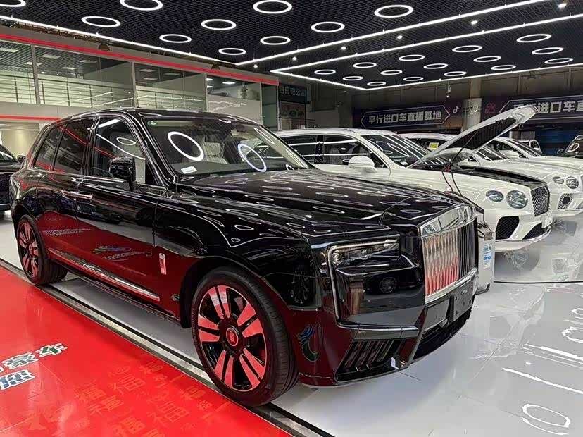 劳斯莱斯库里南整体采用直线条设计,同时延续了巨大的侧窗以及高车顶造型,银色车窗装饰条设计进一步凸显新车的豪华气质,据悉新车的整体尺寸为长宽高5341/2164/1835mm,轴距3295mm,整体远大于宾利添越与路虎揽胜长轴距版