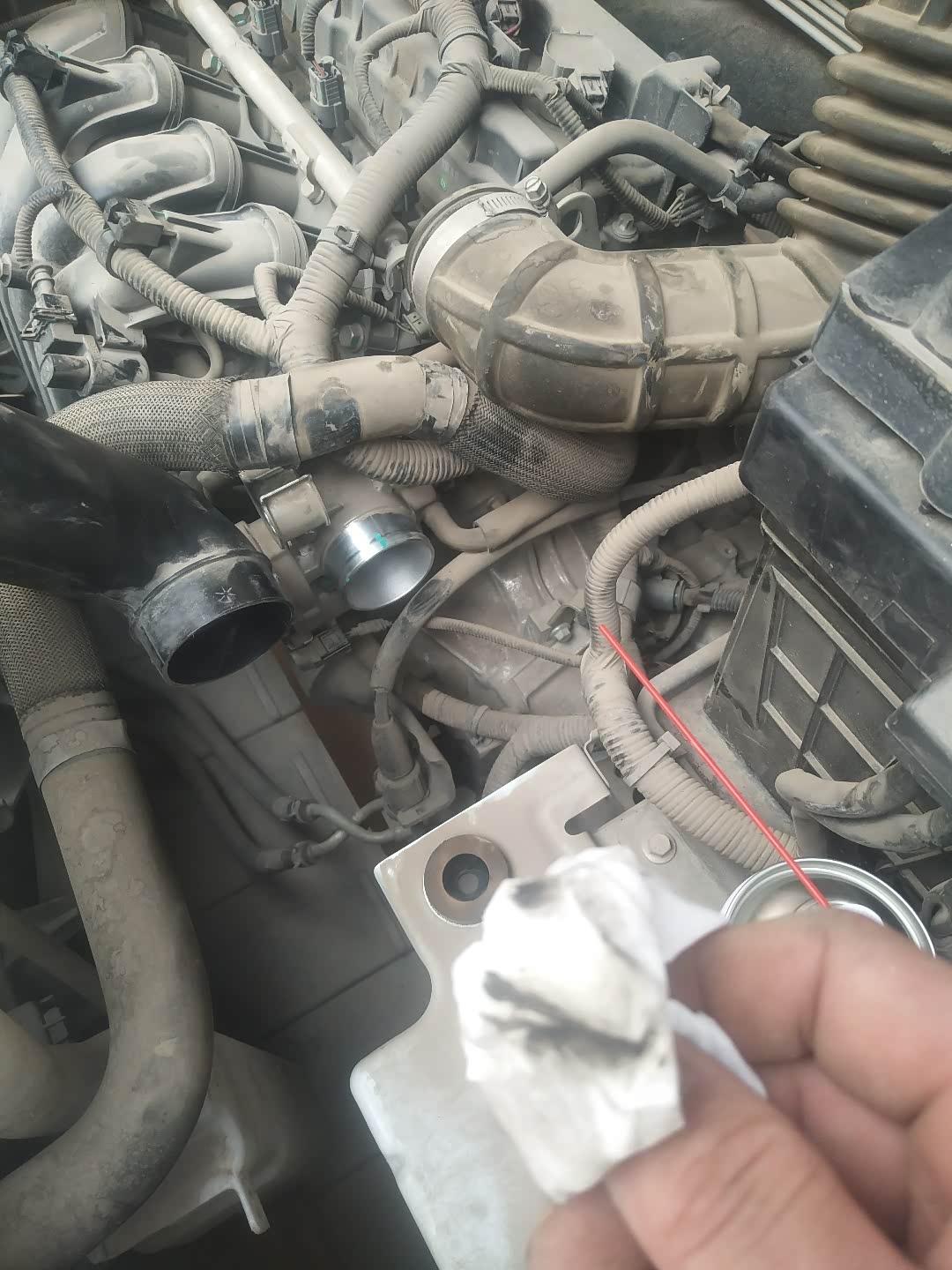 现在23000公里了,加油门也没有以前灵敏了,感觉发动机动力也变小了,自动跳档也很慢,不知道别的车友们怎么样,以前地板油还有一点推背感,现在没一点了,想着两万多公里了,就自己动手清洗吧!