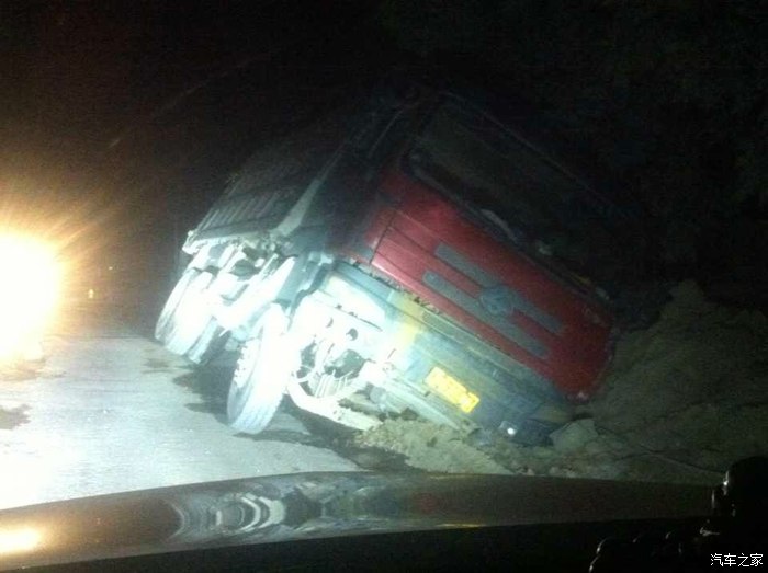 走起!本来上高速的。但朋友说有条近路更近只不过是山路(山路可是我的最爱啊!路越小越兴奋!)二话不说走!在半路上就遇到一起渣土车事故