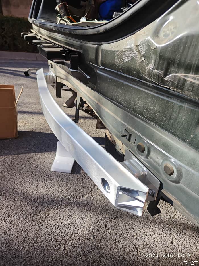 右边拆下防撞梁后,漏出拖车杠安装处。
