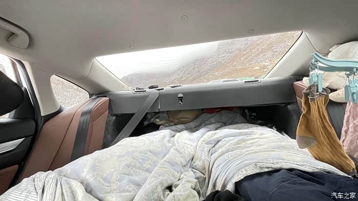 今天天气一直都不怎么样,晒干衣服之后就在车里休息了,冰雹,大雨,大太阳轮流出现,对还有超级强的大风,呼呼呼呼的非常刺激。这边的天气真的和天气预报一点关系都不带有的,还好我睡车里,睡帐篷的朋友估计会体会各种冷热酸甜。开着空调睡觉的感觉别提多带劲了,燃油车肯定没有这样的体验。加满油1100公里的续航,睡一晚上掉40-60公里,景区跑一圈40公里,不介意洗澡的简直可以在这里玩一周,一点不担心没有油,插上转接器,就有插板了,这个点烟器看起来不咋样,快充都支持的,冲手机贼快,还有笔记本啊什么的。吹风虽然带不动,日用的各种东西带着是绰绰有余的,今天整了2桶泡面也是点烟器烧水的,除了不能洗澡是个非常强大的移动小房车了,卧铺也香喷喷啊。东西堆在脚那头,人睡下去脚也可以完全打直,我和朋友都没170,170以上的朋友要自己琢磨琢磨了。本来期待今晚拍到银河的,结果吧。。。。。雨下整夜。。。。。我的心情就一言难尽了。