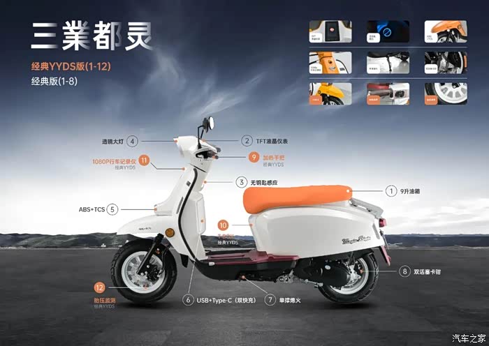 三業机车在近日发布旗下入门级复古踏板都灵125的优惠活动,这一次带来的是经典版和YYDS版两个车型的优惠。售价上经典版为7,880元,YYDS版为8,980元,即日起购买这两个版本车型直接送1,000元油卡。那么为什么这款车型被称之为“全球最高配的125踏板”呢?看完这台车的配置或许能让你惊掉下巴,一台代步通勤的小踏板配置居然比大排量踏板都要高出不少。