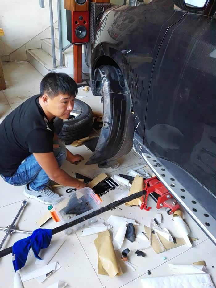 隔音套餐,全车除了顶棚,其他部位全部做隔音。工序为: