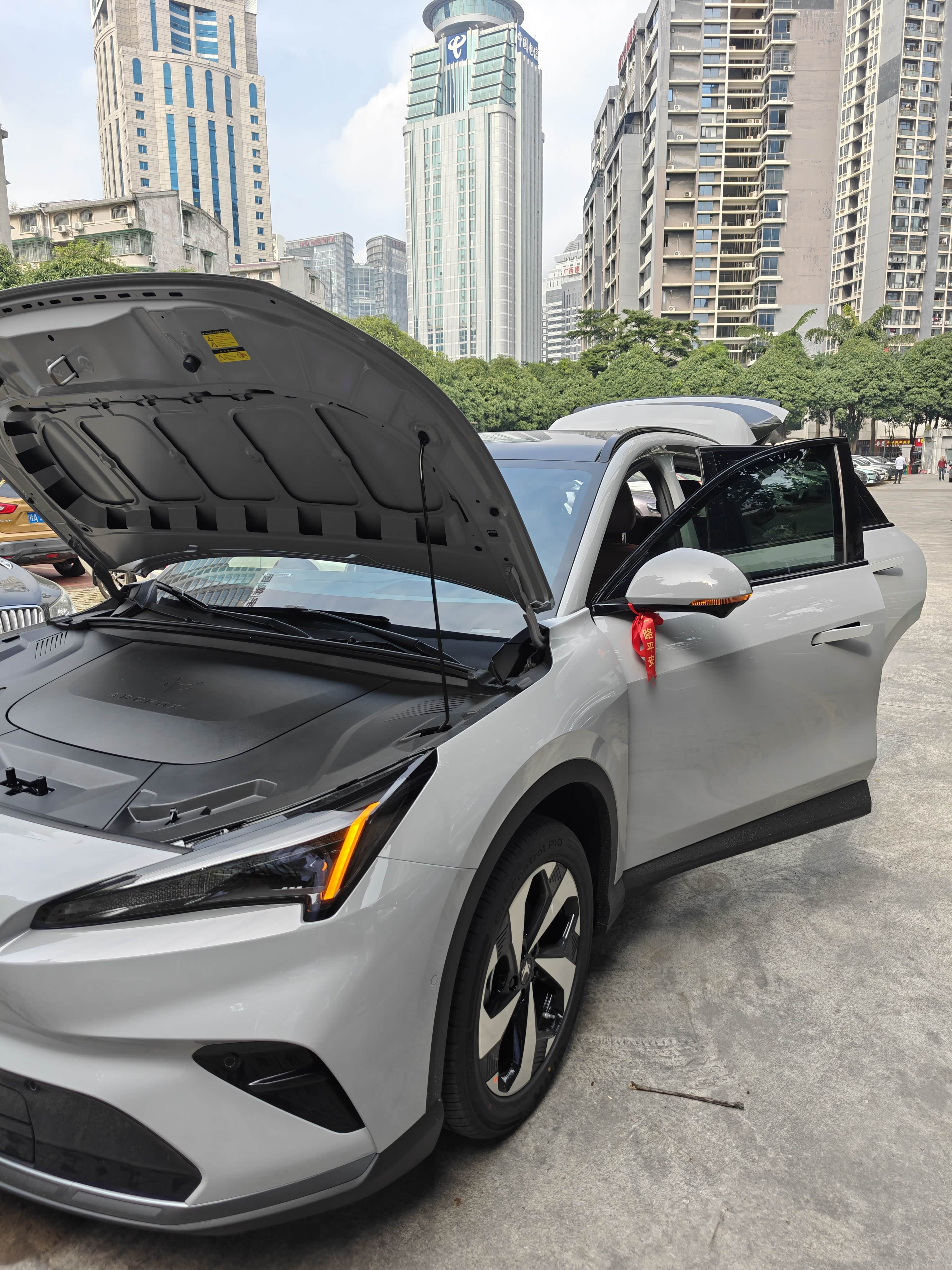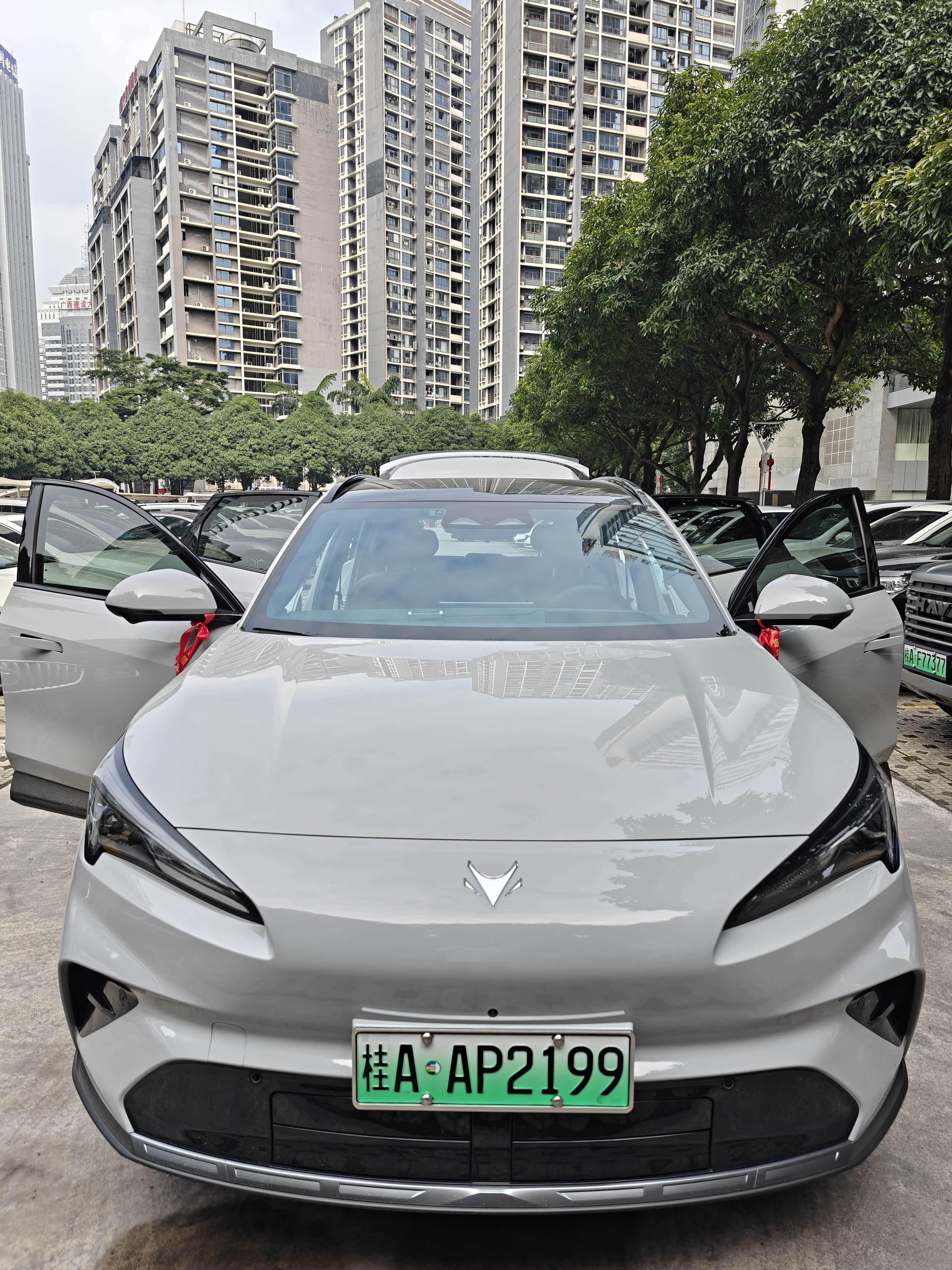 等车15天,提车那天店里简单布置了一下,蓝色气球烘托着熔岩灰的实车,阳光底下车身泛着细腻的金属光泽,比展车还耐看。拿到临时牌照后,我就自己着手办后续手续:保险是找熟人买的,比店里报价省了近一千,险种选了交强险+车损险+第三者责任险(300万),完全够用又不浪费;选号是在交管12123上操作的,提前研究了选号规则,随机选号可以轮5轮,每轮10个号码,我轮了三轮,第三轮突然刷到“桂AAP2199”,数字顺口又好记,果断锁定;全程没跑车管所,网上提交资料、邮寄行驶证,3天就收到了,省时又省心,最终落地价也完全在我的预算内。