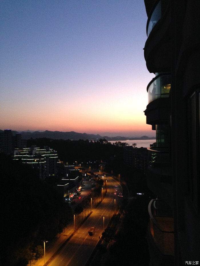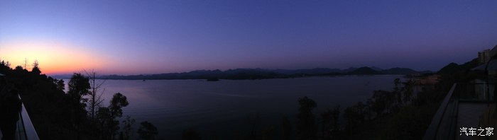 驱车至千岛湖丽景已接近黄昏 站在酒店的大堂阳台瞬间震撼,先拍一张千岛湖全景照,一个字:美