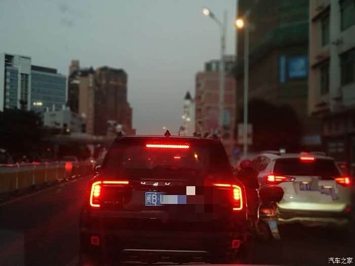 21年元月份的一个晚上,我从市区办事回家,路上遇到一辆黑色大狗。很开心,一直跟随它。路口遇到红灯,黑色大狗的红色刹车灯瞬间点亮。真没想到大狗的尾灯这么有型!拿出手机,摁下快门,一张漂亮的大狗尾灯照片呈现在我眼前。