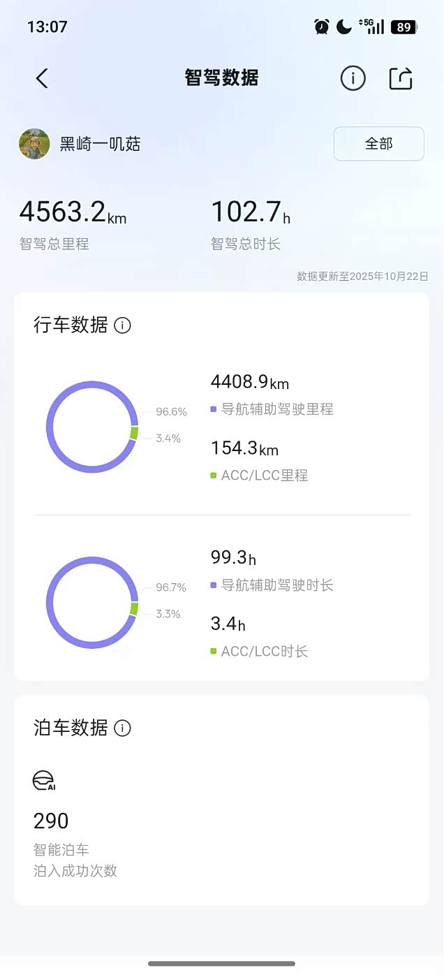 我每天上下班平均30公里的路程,现在基本可以放心交给智驾完成,智驾达成率70%-90%浮动。
