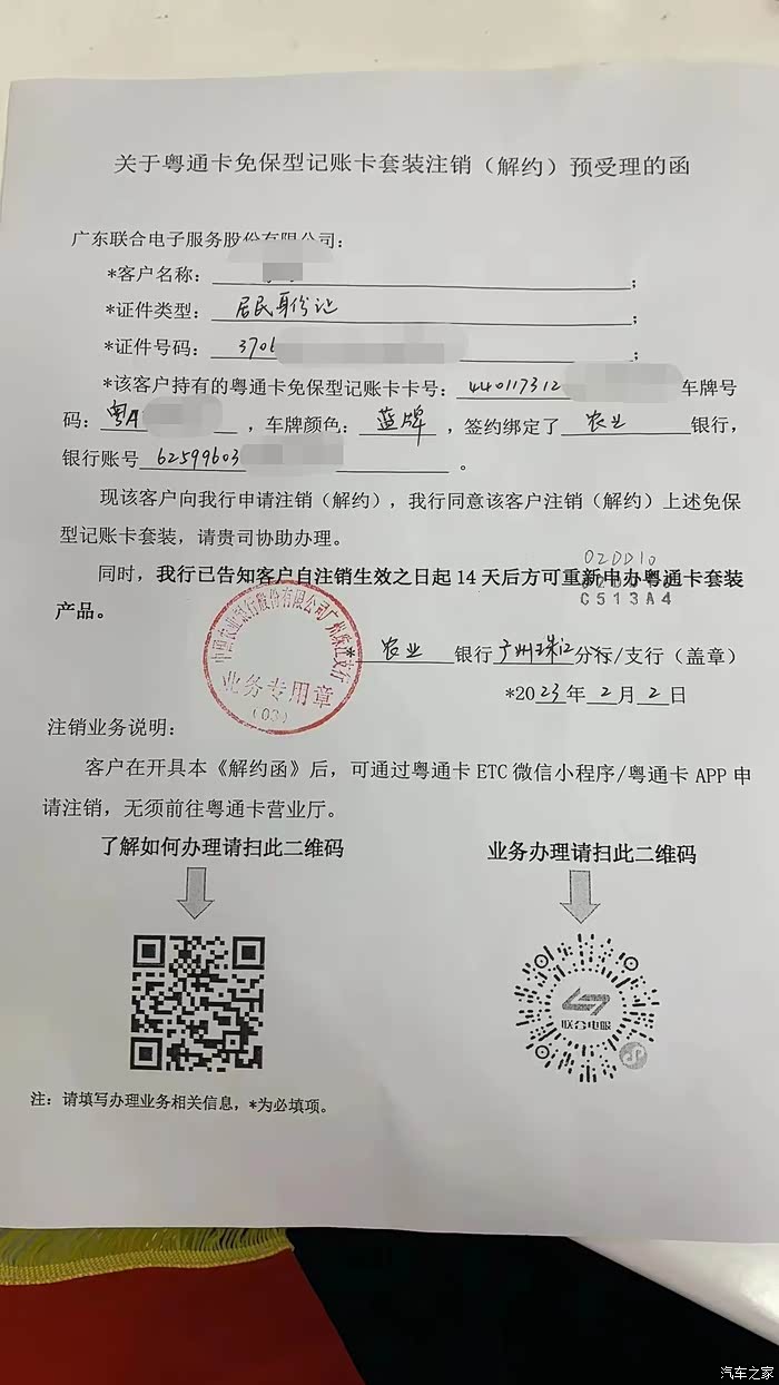 原来是LP的农行信用卡,凡是用信用卡办理ETC的,同一车牌,解绑要在销卡后45天才能再次办理(估计是根据最大免息期制定的政策,即消费日+账单日到最后还款日的时长),结果期满后因为疫情加上非卡主本人联系,银行线上办解绑非常麻烦,折腾了很久,终于还是去银行开了一个解绑说明。结果到了广州马场ETC办理,柜台根本都没看那说明,也说了没有说明中的14天限制,当然也不能说可以没有这张纸。同时还有一个ETC官网上下载的他人代办声明,不上图了。