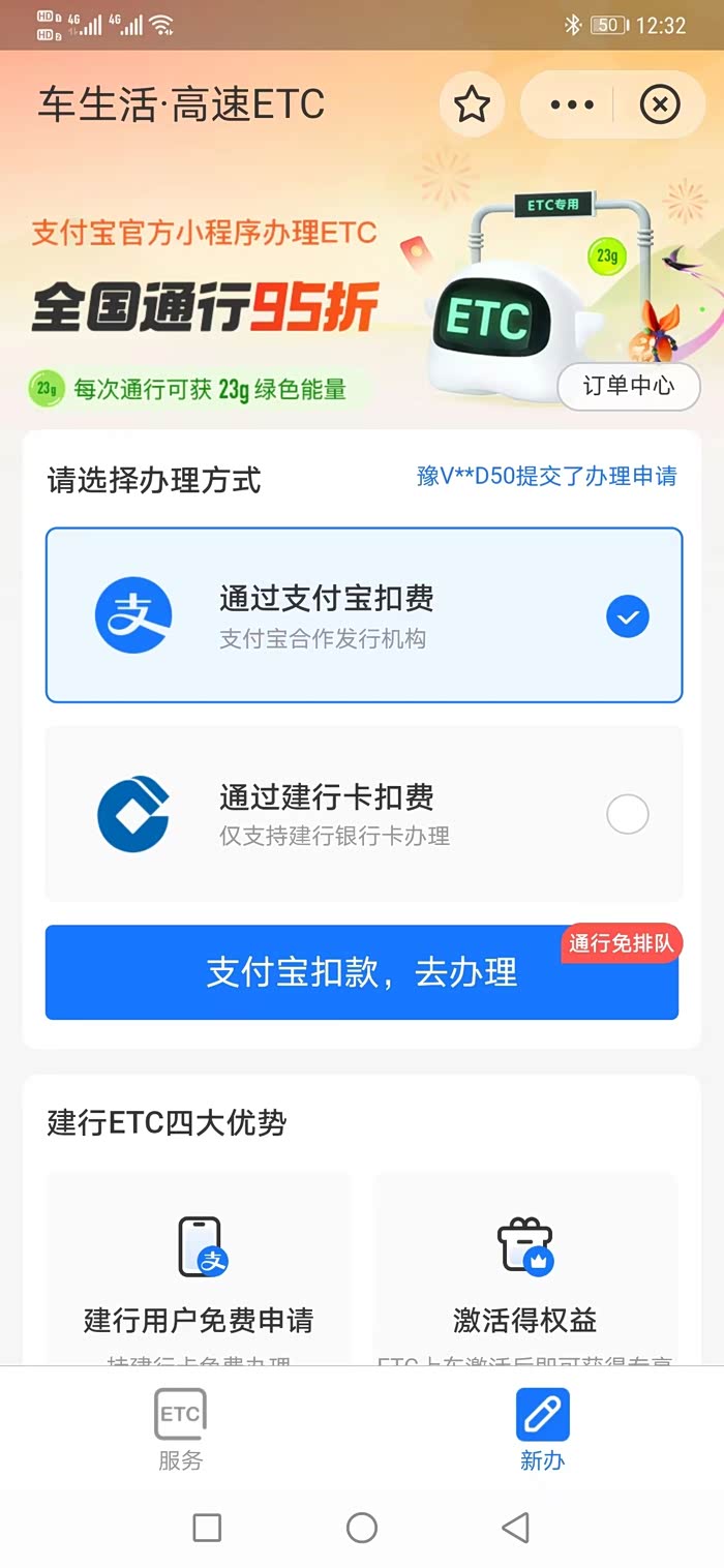 回到家后,查到微信和支付宝也可以办理ETC,在网上做了一些功课,具体大家可自行查查,总结下来,早期微信支付宝的设备是有一些问题,但后面逐步解决了,他们与银行抢生意,势必得不到更多的支持,而且他们的客服明显不够用,更换和咨询或者退款都很麻烦,有人甚至搞了大半年。但是支付宝有一个让我满意的地方,就是他跟建行合作,可以直接支持建行的信用卡和借记卡。用花呗积分就能免押金办理,但是记住,真要免费只能是银行办理,微信支付宝的免费都有代价,比如几年不能更换,否则要直接扣钱之类的,需要提前了解清楚。