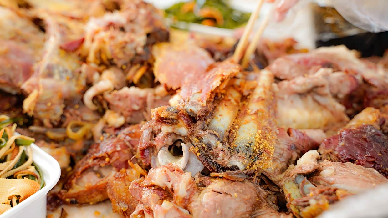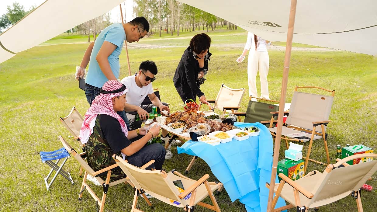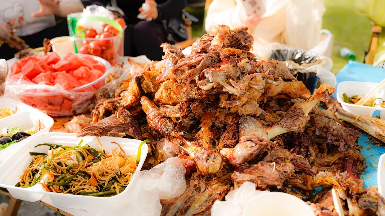 下午五点,我们的烤全羊准时上桌!金黄酥脆的外皮还在滋滋冒油,撕开后鲜嫩的羊肉直接爆汁!工作人员教我们蘸着干料和韭菜花酱吃,一口下去,羊油的香气在嘴里炸开,配上冰镇啤酒,我和闺蜜直接放弃形象,戴着一次性手套抢羊腿。