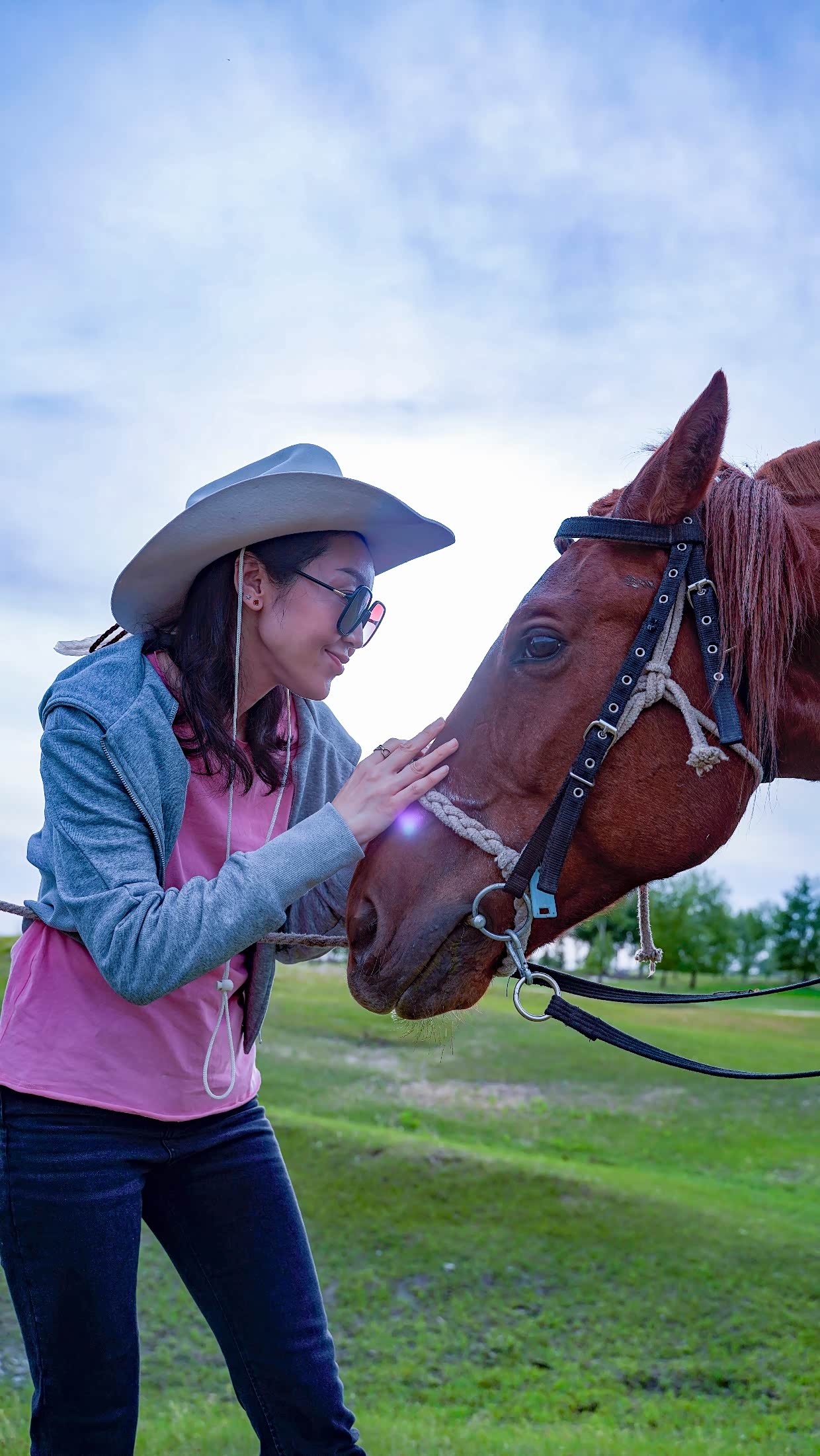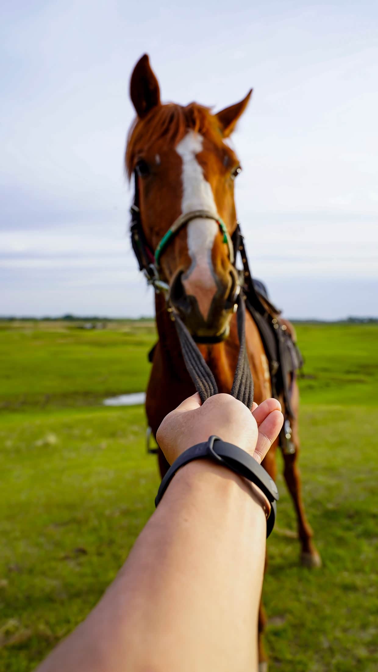 吃饱喝足后,我们直奔马术野骑区。本来想骑在马上拍大片,结果上马那刻就破功了!我的马特别调皮,刚走两步就低头啃草,怎么拉缰绳都没用。闺蜜的马更绝,追着前面的马跑,吓得她尖叫着抓紧马鞍,说好的草原女骑形象全毁了。不过跑起来之后真的超爽!风把头发吹得乱七八糟,但那种自由驰骋的感觉,比在健身房撸铁爽一百倍!