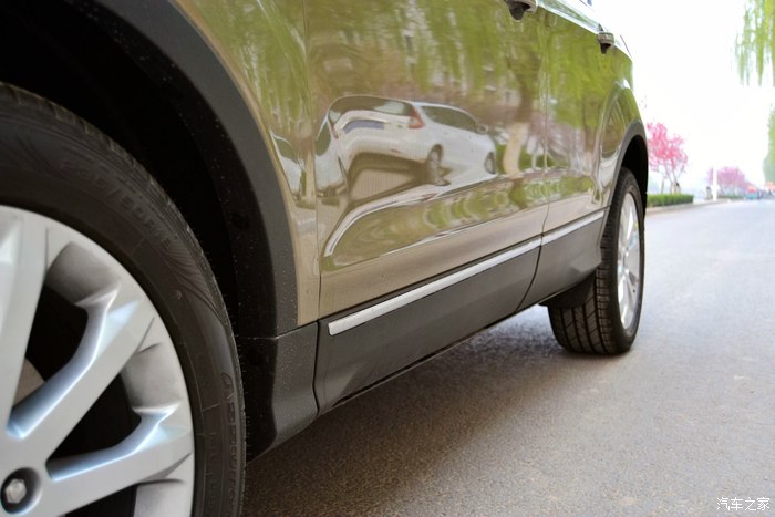 车门下方的保护塑料板和亮条设计,减少了车轮扬起的石子和沙土对车漆的损伤。