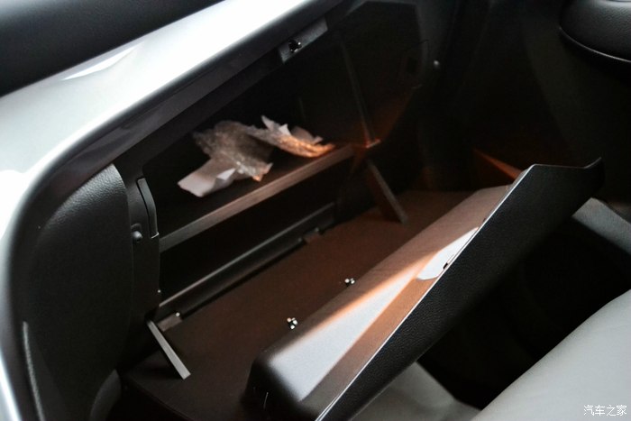 带灯的手套箱,开口很大,但是实用性比较小。
