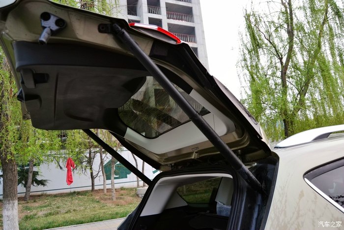 高科技产品,感应式尾门和开启高度可调功能,感应式尾门指的是在钥匙随身携带的情况下,用脚扫一下保险杠下方,尾门自动开启。按一下旁边的按键,就是自动关闭。而高度可调功能,指的是可以调整尾门打开后的高度,适合各自比较矮的女性车主。