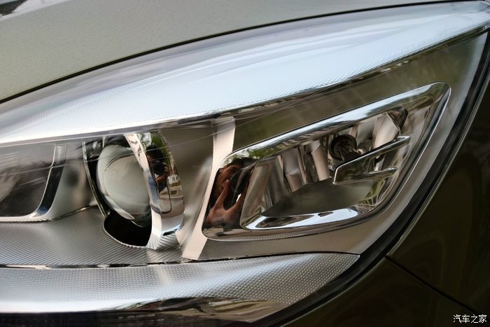 远近光分体式大灯,并且还标配了透镜、行车灯条、随动转向照明系统。大灯里的三个灯没有转向灯,转向灯在雾灯旁边。边上的灯泡是随动转向照明系统。