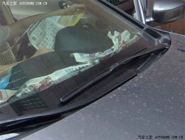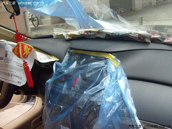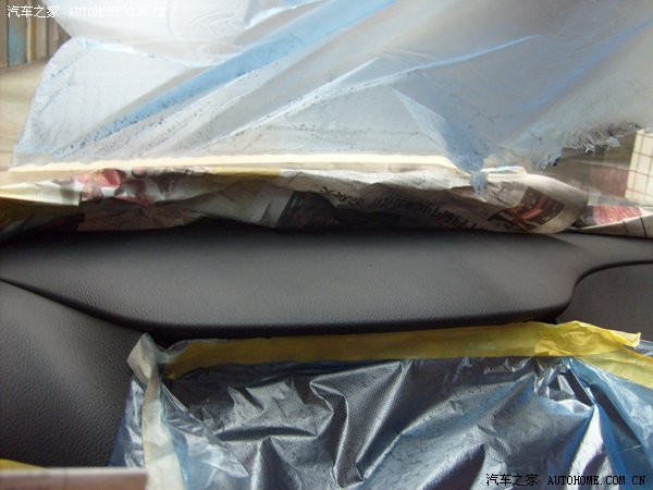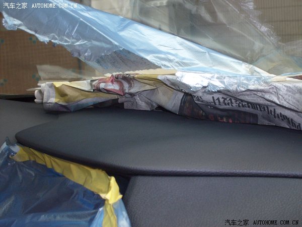 各喷两遍过后,效果立马出来了,很快就把白点、黄点的部位遮盖了。由于喷涂手法不熟练,担心喷到玻璃和导航了,又找了塑料袋遮挡一下(方法很土啊,但很实用)。
