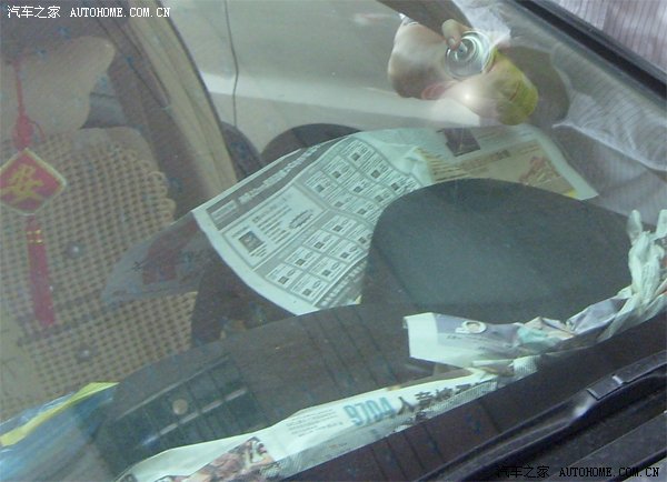 去掉遮挡的报纸和塑料袋,让中控台给太阳晒一下,------太完美了!就像新车一样!顶呱呱!