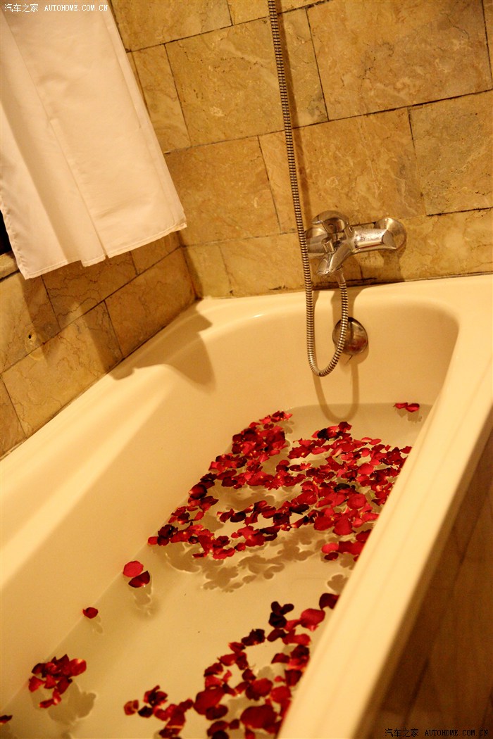 很可惜的是碰到了我这种不会享受浪漫浴缸浴的屌丝,我心想着我还要把水放掉,把花捞起来,才能洗澡,累死姐姐了。。