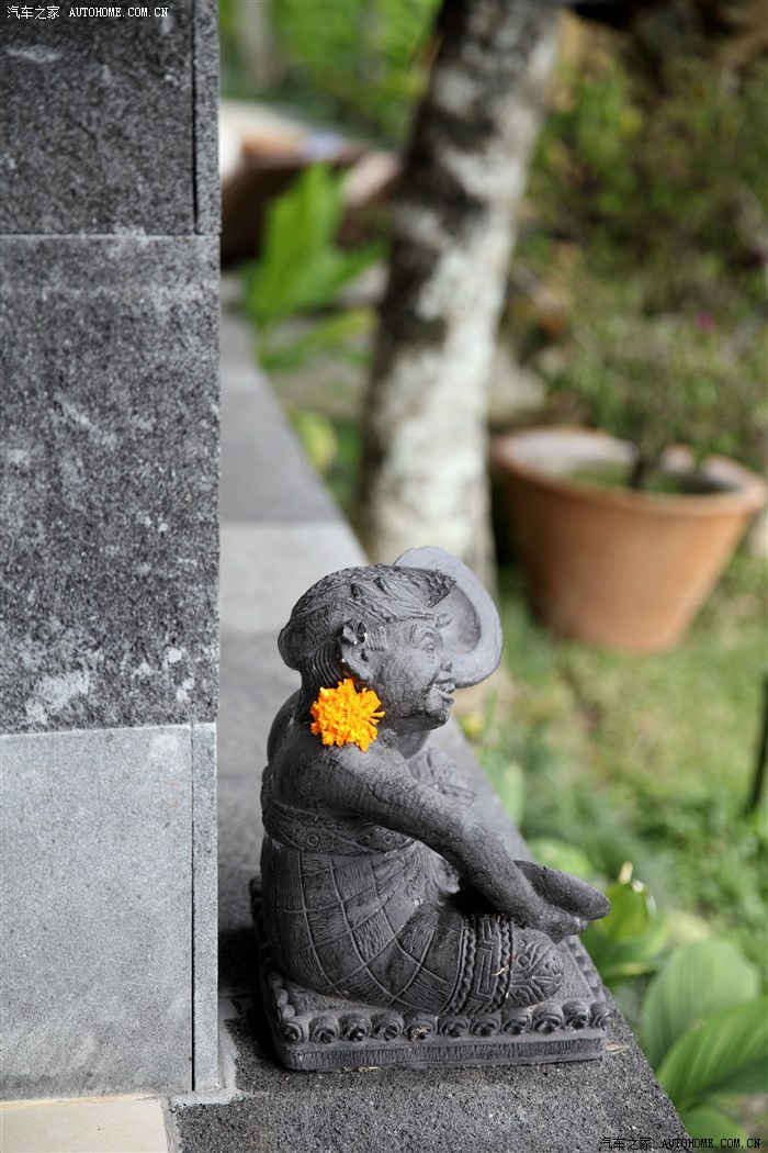 祭拜的黄衣阿姨每天早上都会顶着一篮鲜花和米食经过我们的餐厅,然后在每个石像和神台前摆上一小碗米饭和鲜花,或者是水果。再取一朵新鲜的鸡蛋花沾上水,手指翘成兰花样,口中轻吟着我听不懂的诗经,最末了还要洒上水,翘起兰花洒水的样子格外优雅与神秘。看着她们如此虔诚,你会觉得,有信仰,是一件如此伟大的事情。