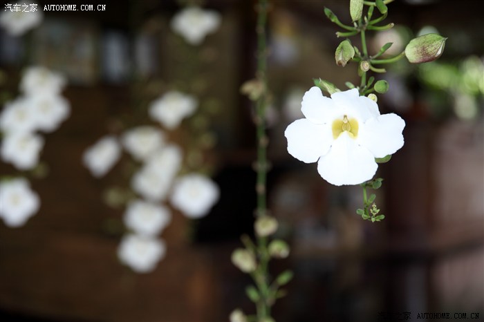 早上出门去问酒店车时间表的时候,发现了昨天晚上黑暗中的白花,搭在屋顶像瀑布般倾泻而下,