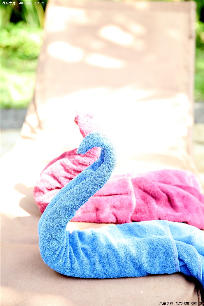 看到泳池的躺椅上有折好的小天鹅,我也跑过去折了一只,