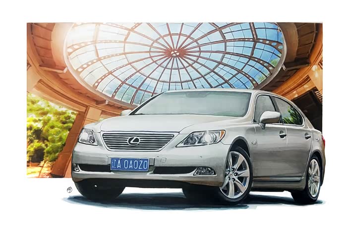 这一副画,相比去年所画。车依然写实,上色方面则更加准确,用笔也随意的多。