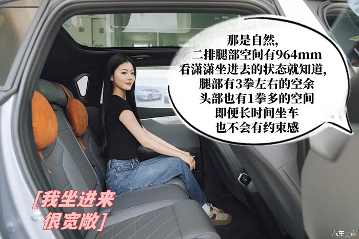 再就是潇潇想要的大空间,前面也提到过,2880mm的越级轴距以及CTV车身电池一体化技术的设计,都极大的保障了车内的空间。