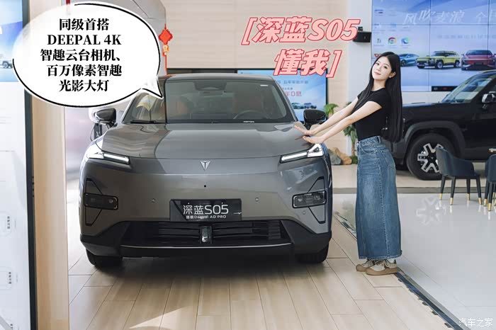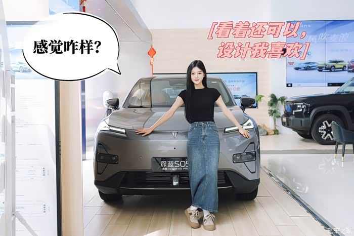 于是潇潇发来一串语音,要10万左右的新能源车,最好是纯电的,随便跑不心疼,但续航也要能满足自己城市周边自驾游的需求;最重要的是一定要智能化程度高,这样自己开车出去玩也不会累;还要空间大,自然也不能丑,其它的也没什么要求了。老曼我一听,这看似没有啥要求,其实是既要又要还要啊。幸好现在车企都在搞内卷,不然按照潇潇的要求还真不好找,想了一圈,觉得深蓝S05挺符合她的需求,就找了照片发给潇潇看,她挺满意深蓝S05的设计,就找了一个合适的时间,带她去店里看车。