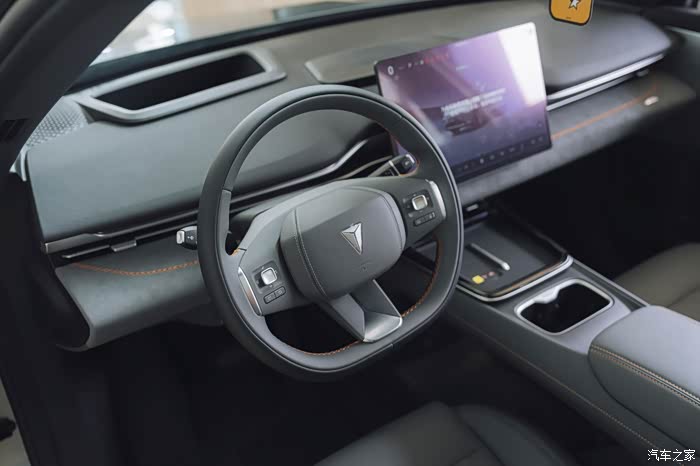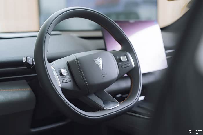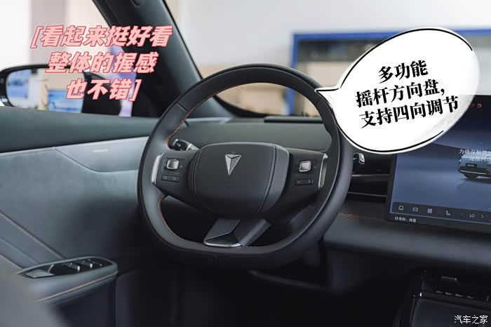 方向盘的设计也很讲究,采用未来飞行器的摇杆设计,撞色的设计也更具个性化。