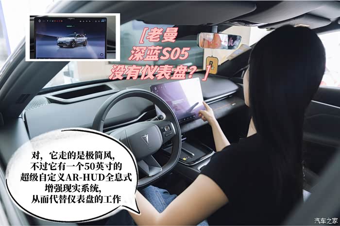 同时,深蓝S05走的是极简风,前排只有一个15.4英寸的中控屏,当然顶配是一个向日葵屏,支持左右旋转15° ,搭载的是高通8155芯片车机系统,紧跟当下的趋势,整体的流畅性还是有保障的。