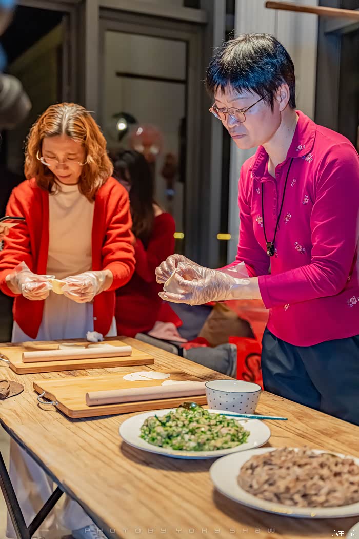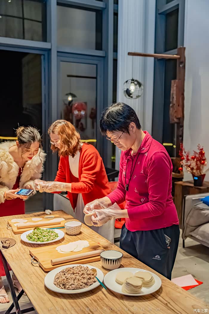 一顿操作猛如虎,大家都在即席挥毫和剪窗花之后,也开始来制作今晚的宵夜,包饺子。