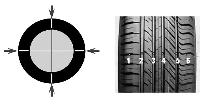 第二个条件就需要观察或者车辆轮胎的磨损情况,有资料说从轮胎设计上,每条轮胎外胎应沿周向、等距均布了一些胎面磨耗标志,其高度应不小于1.6mm。我曾经观察了自己的轮胎发现在朝向地面的胎面部分,尽管有深深的凹槽,但凹槽的底部真的有一些小突起。为此我还专门买了轮胎磨损车辆工具。