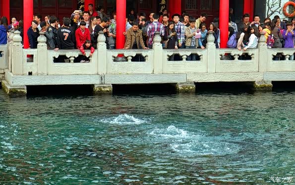 接下来来到了此行的重点,天下第一泉---趵突泉。我终于能亲眼看到,亲身感受小时候语文课本上老舍先生对趵突泉的描述:“泉太好了。泉池差不多见方,三个泉口偏西,北边便是条小溪流向西门去。看那三个大泉,一年四季,昼夜不停,老那么翻滚。你立定呆呆的看三分钟,你便觉出自然的伟大,使你不敢再正眼去看,永远那么纯洁,永远那么活泼,永远那么鲜明,冒,冒,冒,永不疲乏,永不退缩,只是自然有这样的力量!”