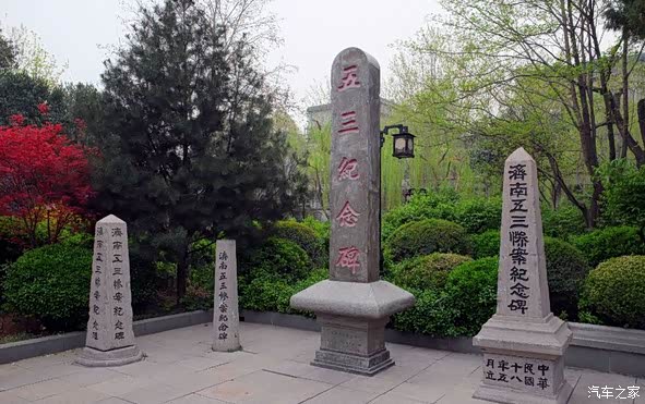 趵突泉公园内还有一处非常值得一去的地方,那就是“济南惨案纪念堂”。济南惨案又称五三惨案。第二次北伐进行期间,日本恐怕中国一旦统一,必不能任其肆意侵略,是以竭力阻挠北伐之进行。日本以保护侨民为名,派兵进驻济南、青岛及胶济铁路沿线。1928年5月1日,国民革命军克复济南。5月3日,日军寻衅挑起事端,肆意捕杀中国军民,制造了震惊中外的“济南惨案”。此案中中国官民被焚杀死亡者,达一万七千余人,受伤者二千余人,被俘者五千余人。每年的5月3日10点,济南市都会鸣放防空警报,纪念“五三惨案”,提醒世人勿忘国耻。