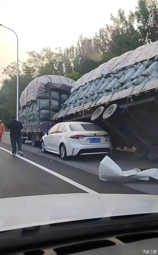 图一是高速钻卡车底下了,A柱断了,
