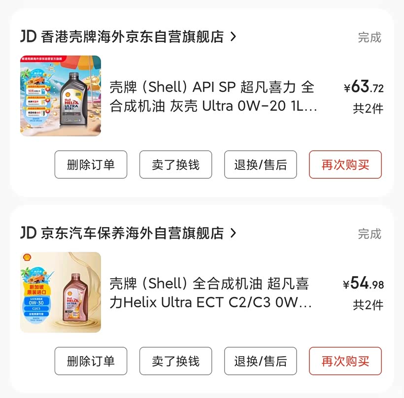 这次使用的是壳牌超凡 030 混020,购买价格四升大概一百多钱。都是京东自营,给这个老车用绰绰有余了。