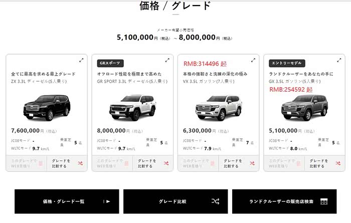 日本当地: 3.5TT LC300 含税价格.