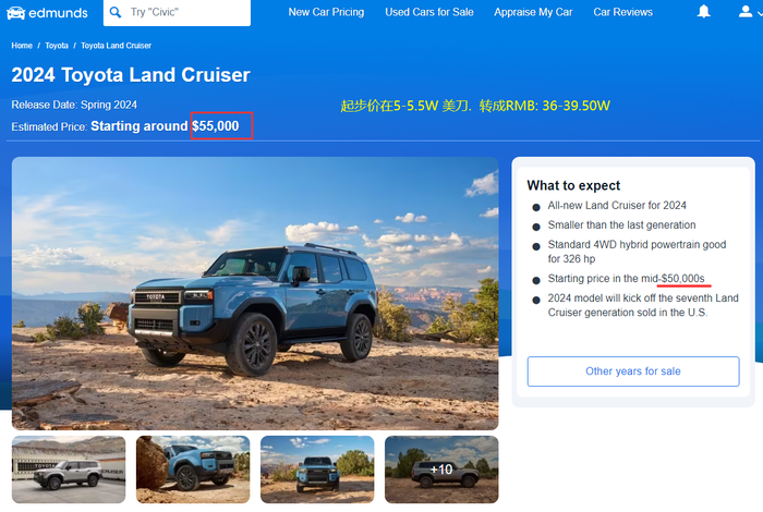 2024款2.4T混动在美国发布. 2.4T混动, 326马力, 630NM扭矩, 8AT, 美国价格36W RMB 左右起, 估计国产也就40左右起(像坦克500混动这些车型出来, 所以小日也把最新技术用在中国. 中国汽车进步很大). (原3.5L自吸普拉多 280马力, 365NM, 6AT.), 加速强不只一点点. 但油耗在8.7L/100KM左右.