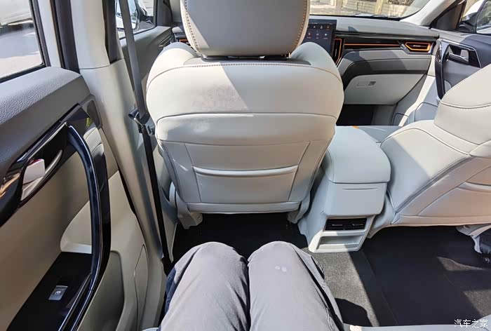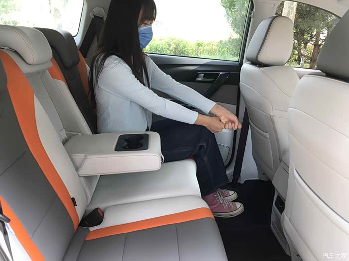 妹妹自己也坐在后排试了下,腿部还有三拳多的空间盈余。