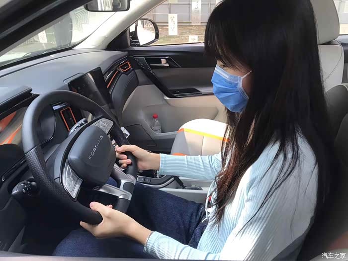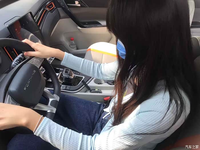 我妹还挺有主人翁精神,自己上手就开始感受起来了,整体的方向盘配的电动助力方向盘,对女司机来说相当友好,低速轻盈高速稳重,这样不管是日常停车倒车还是跑环线高速,便利性和安全感都拉得挺满的,不过就妹妹这拿了三年驾照就一个星期路跑驾龄的情况,跑高速肯定是够呛,等车子到家让她慢慢练去吧。