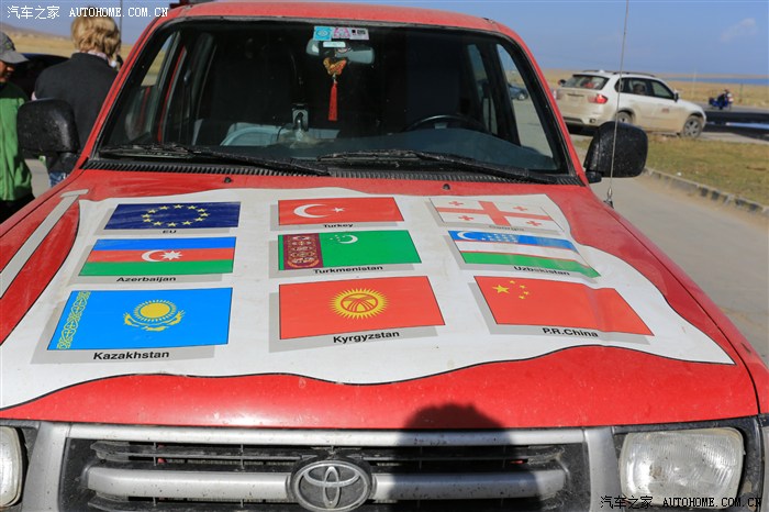 在环湖公路上加油的时候来了一队比利时的丰田皮卡车队楼主和朋友用蹩脚的英语和他们沟通得知全是从比利时开到这里的 引擎盖上的国旗就是他们经历的国家 中国重庆是他们最后一站 到达重庆后再坐飞机回国 车坐船回国 人家那才叫自驾游 据说开了16000英里了 厉害佩服