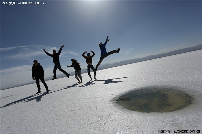 到达茶卡盐湖后发现盐湖表面大概有几公分盐水 于是我们想办法自己搭了几十米的独木桥去盐湖中心的干地 后来很多人都通过我们搭的桥 我们是不是要收点过路费呢? 呵呵 开玩笑的 出来玩嘛 开心就行