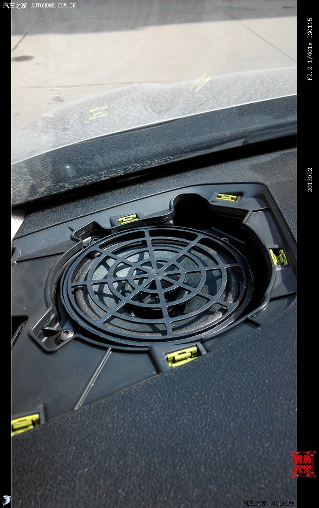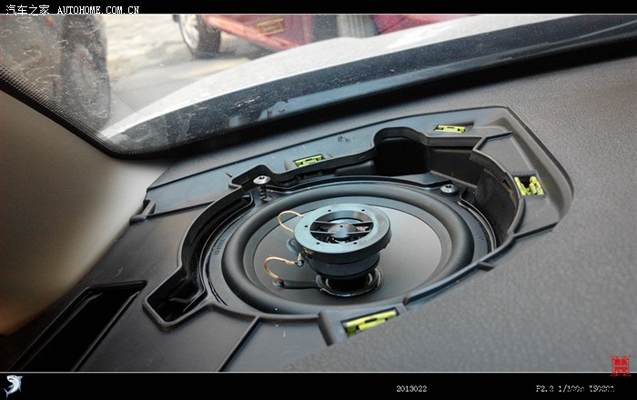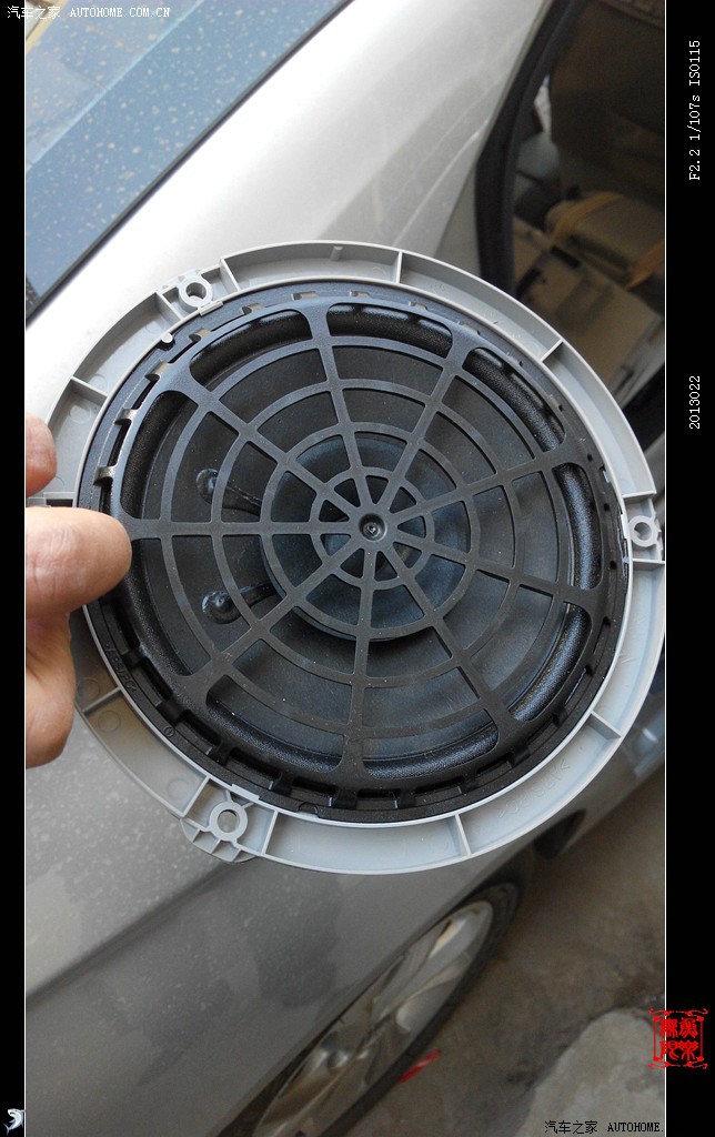 左侧驾驶员网罩没有螺丝,可直接撬起。前喇叭为标准的5寸孔距,有4个螺丝固定的。