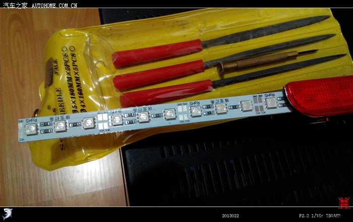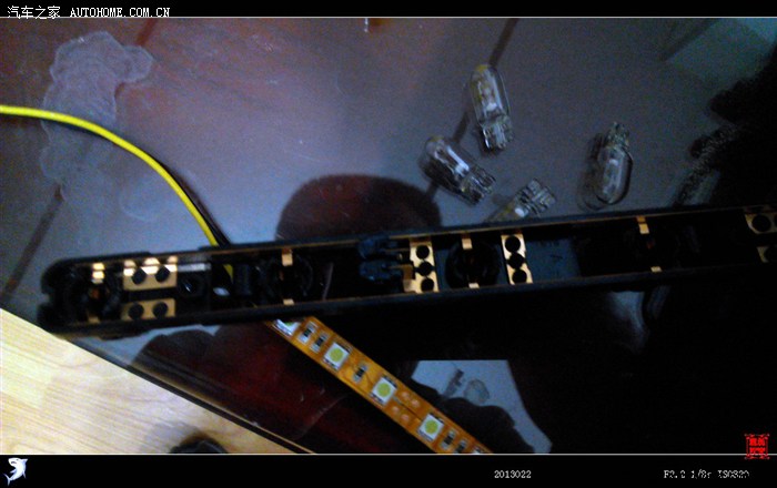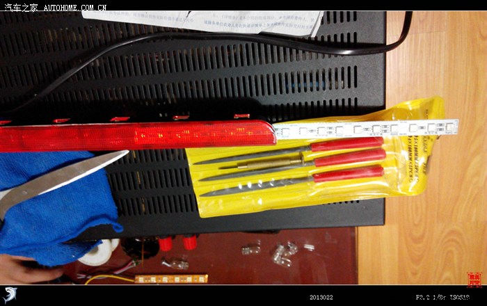 将灯珠底座卡子拆开,卸掉灯珠。从高位刹车灯罩两边锯开口,将LED灯带插入,热熔胶封好。再焊两条线引出,焊好插座,插入原车高位刹车灯插座即可。注意要调试正负极。