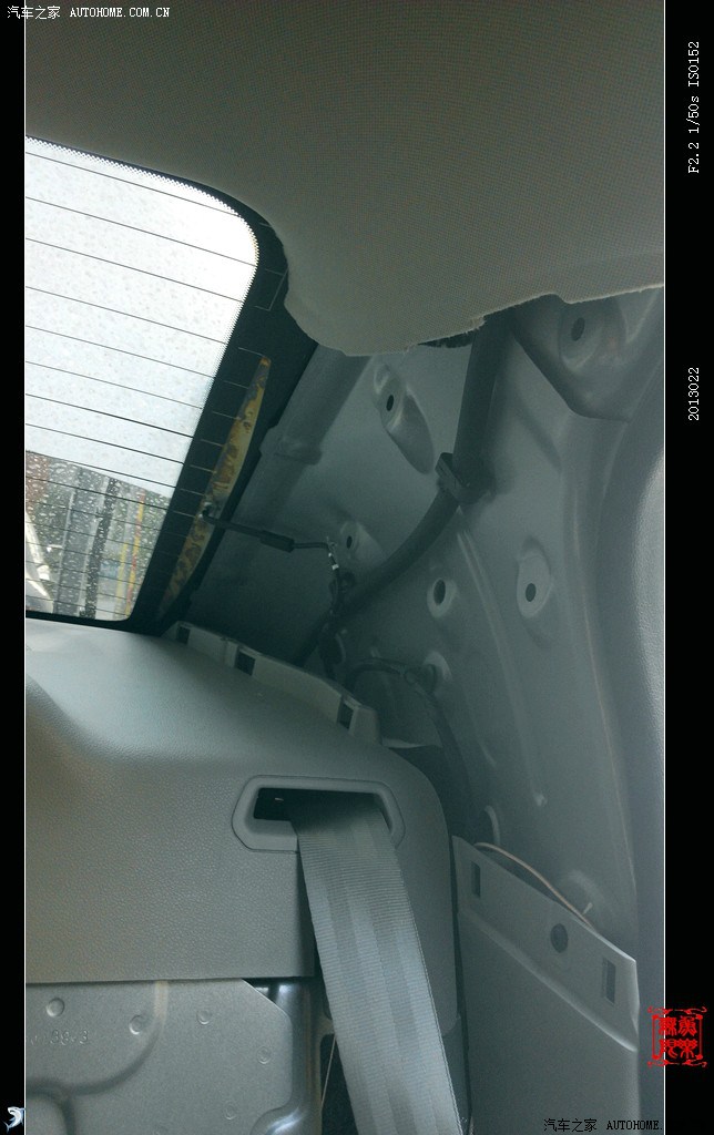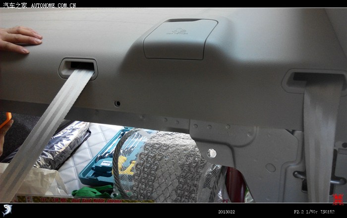 怀着愉悦的心情更换后喇叭,开始最大的工程——拆后背板。先将后排靠背放倒,撬掉靠背后4个水平压卡